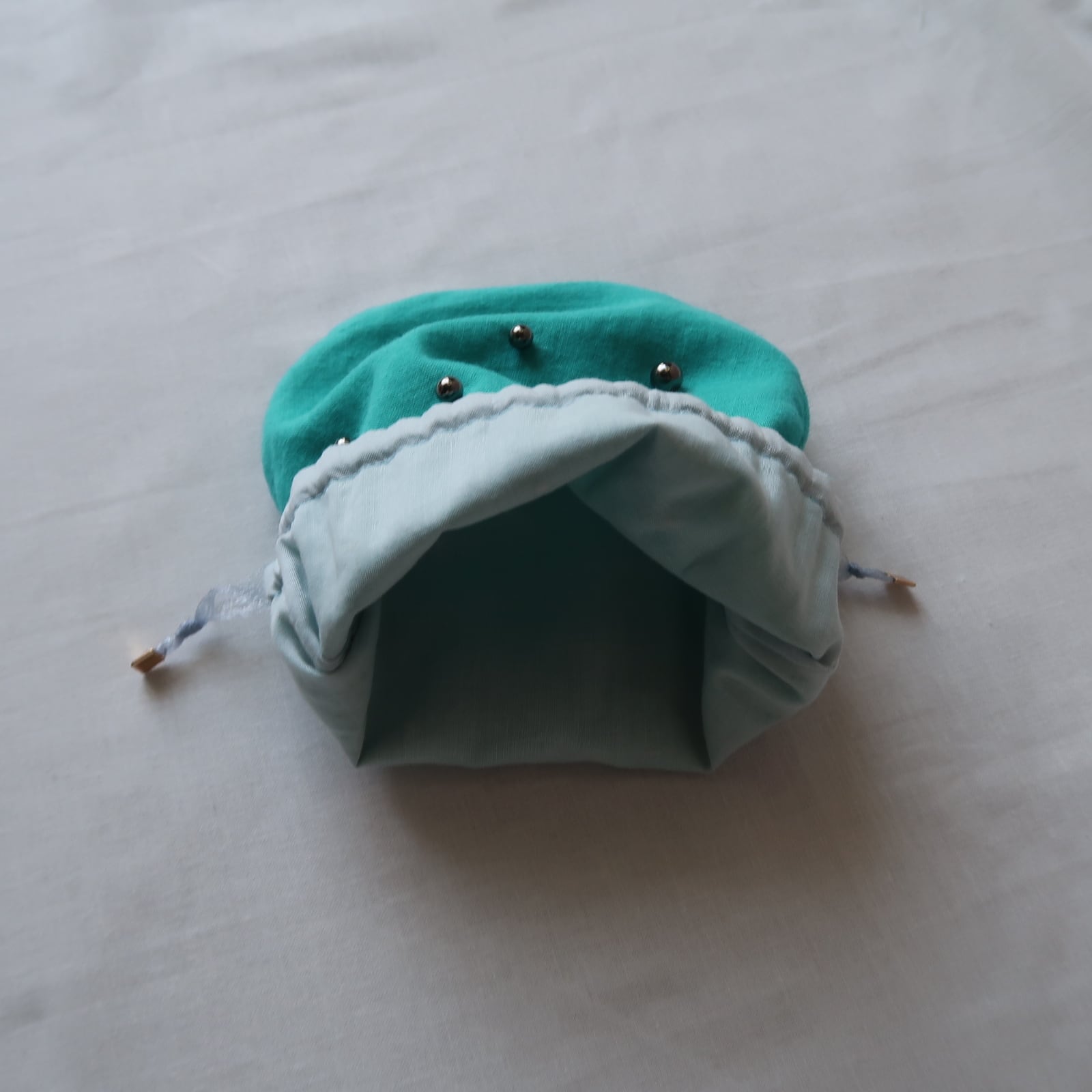 ちょっとした物を入れるのにぴったりなサイズの巾着です。お菓子ポーチ、エチケットポーチ、メイクポーチとして、バッグにしのばせてみてはどうですか♡