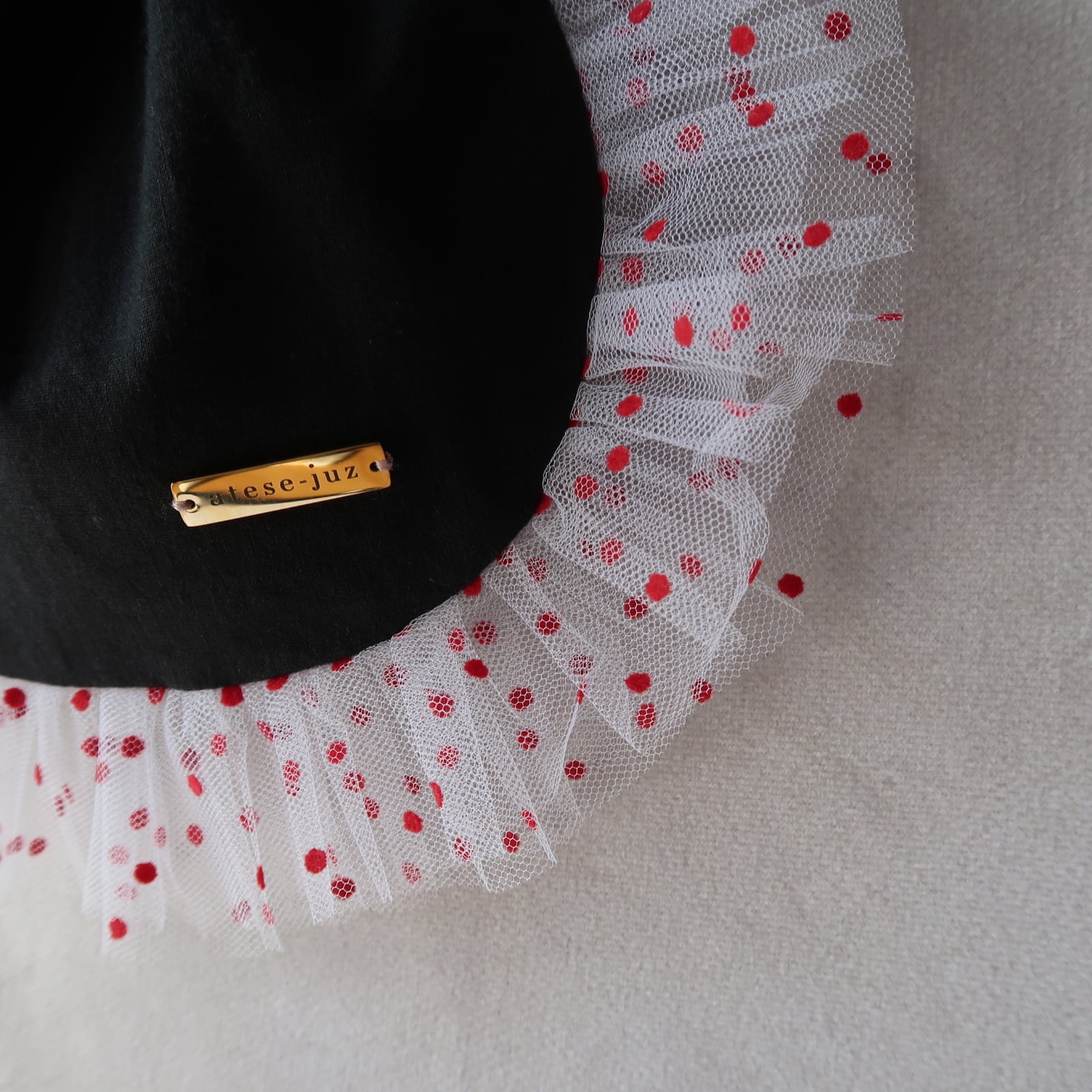 フリル部分にはドットのチュールを使用し、華やかさと可愛さを兼ね備えたデザインに仕上げています。