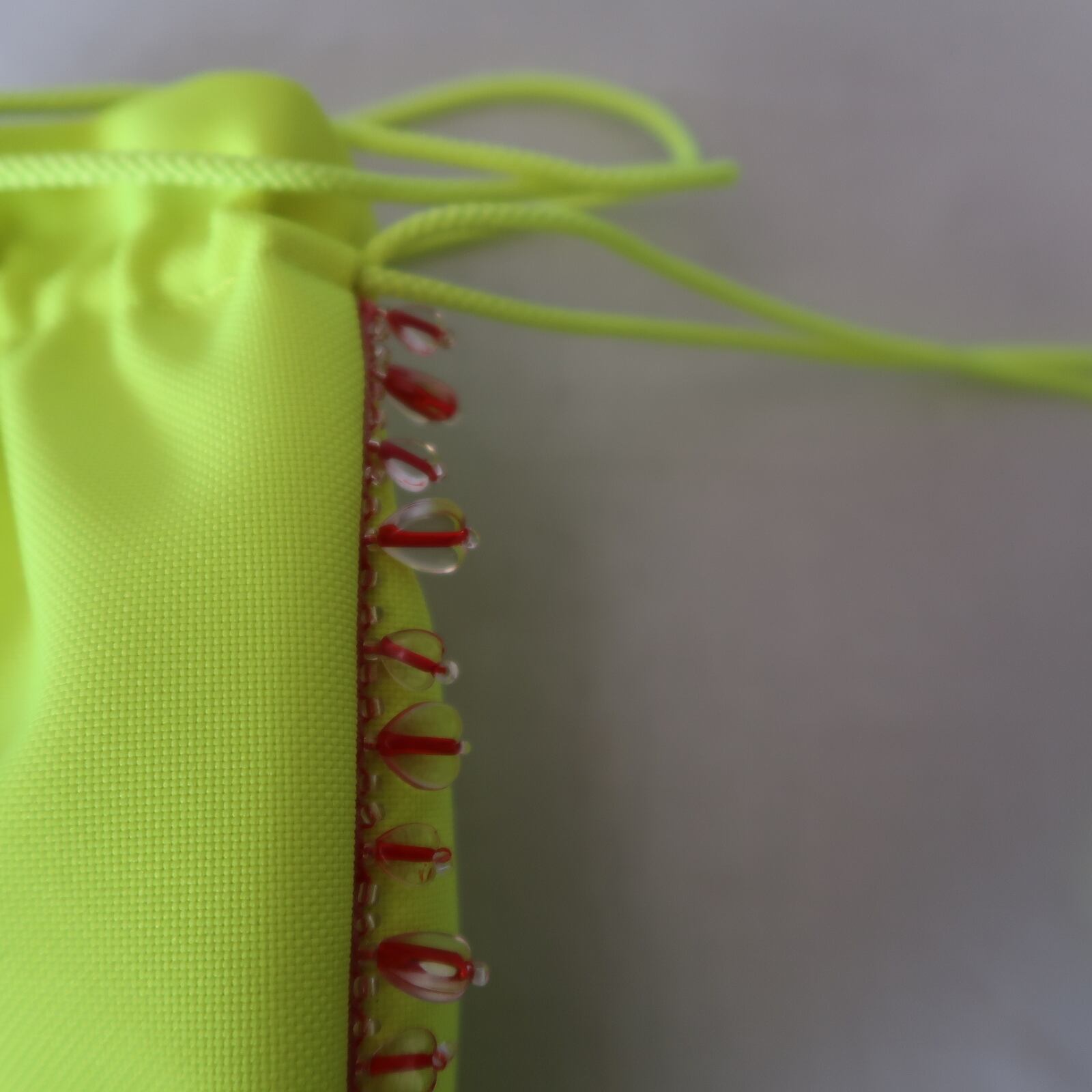 ネオンイエローのポップでキュートな巾着です。