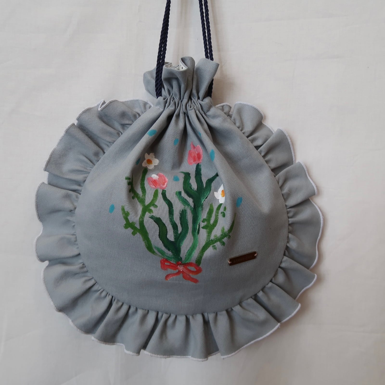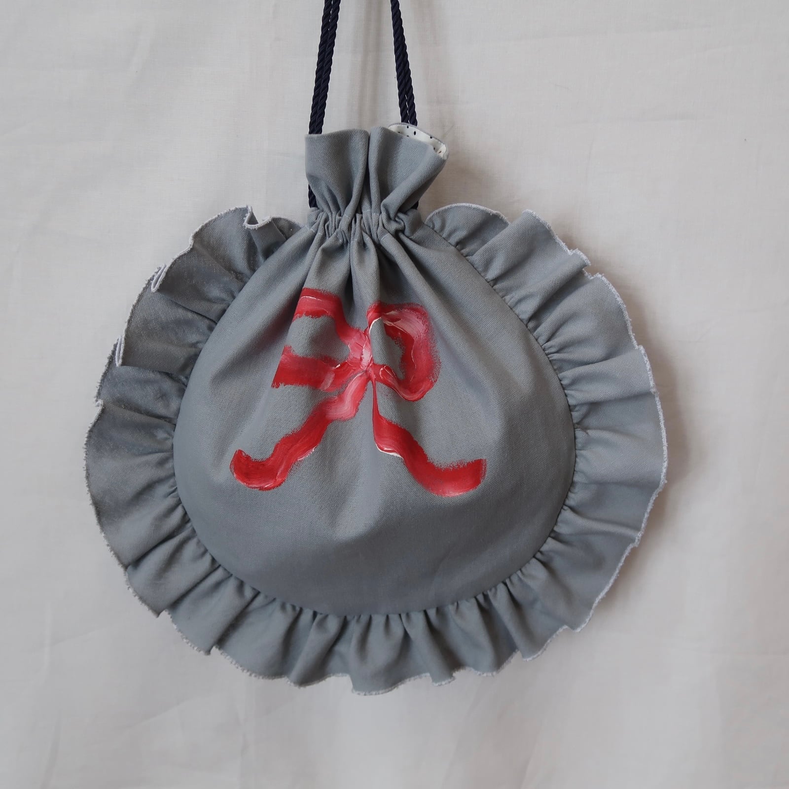 ・アクリル絵の具でペイントしています。水性の絵の具で乾燥後は耐水性になりますが、洗うと経年で剥がれていきます。お洗濯はご遠慮ください。